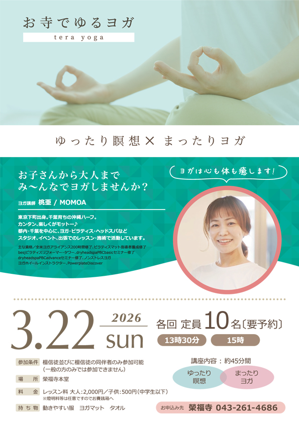 また合わせて初開催のヨガ体験〈榮福寺本堂 3月22日のみ〉、